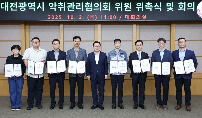 [대전 세계타임즈=이채봉 기자] 대전시는 10월 2일 시청 대회의실에서 ‘대전광역시 악취관리협의회 위촉식 및 회의’를 열고, 지역 악취 문제 해결을 위한 민·관 협력 기구를 공식 출범시켰다.