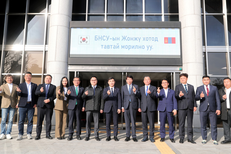 28일 전주시의회에 따르면 몽골 날라이흐구 나얀바야르 다시제베그 구청장 등 6명의 대표단이 이날 전주시의회를 찾아 남관우 의장을 비롯한 의장단 및 상임위원장단 등과 양 지역 우호 협력을 위한 간담회를 가졌다.