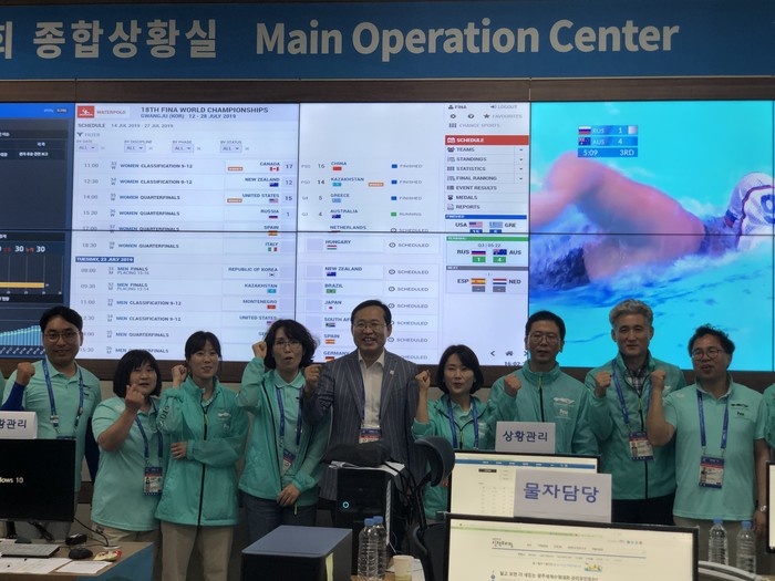 [광주=세계타임즈 손권일 기자] 김동찬 광주광역시의회 의장은 22일 오후 광산구 남부대 2019광주세계수영선수권대회 종합상황실(MOC)을 방문하여 대회 관계자들의 노고를 격려했다.
