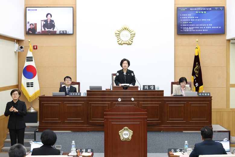 이해양 의장은 폐회사를 통해 “이번 임시회에서는 조례안, 동의안 등 상정 안건을 심의·의결하고 주요 사업장을 방문하여 그동안 사업 성과와 문제점을 파악하고 발전적 대안을 제시하는 등 현장 중심의 움직이는 의정활동을 펼쳤다”며 “11월 14일부터 열리는 제2차 정례회에 대비하여 의회와 집행 모두 사전에 철저히 준비해 주시기를 당부드린다”고 말했다.