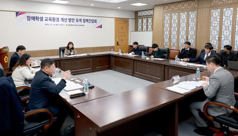 [대전 세계타임즈=이채봉 기자] 대전시의회는 31일 시의회 공감실에서 김민숙 의원(더불어민주당, 비례대표) 주재로 ‘장애학생 교육환경 개선 방안 모색 정책간담회'를 개최했다.