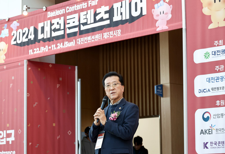 [대전 세계타임즈=이채봉 기자] 대전시의회 조원휘 의장은 23일 대전컨벤션센터에서 개최된 ‘2024 대전콘텐츠페어’에 참석해 개막식을 함께하고, “대전은 융복합 특수영상 클러스터 조성 추진부터 이스포츠경기장, 콘텐츠코리아랩, 콘텐츠기업지원센터 등 K-콘텐츠 산업 육성에 총력을 기울이고 있다”며, “대전시의회는 대전이 세계 콘텐츠 시장의 중심에 설 수 있도록 각종 사업과 예산 지원에 최선을 다하겠다”고 밝혔다.