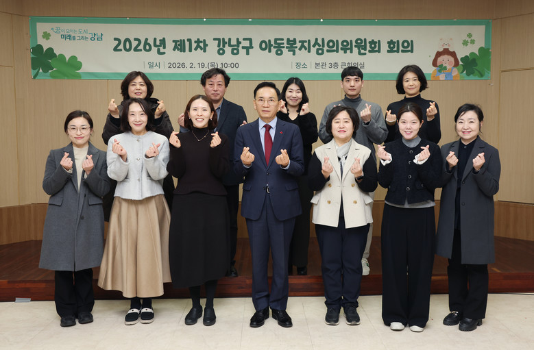 [강남구 세계타임즈=이장성 기자] 꿈이 모이는 도시, 미래를 그리는 강남구(구청장 조성명)가 19일 강남구청 본관 3층 큰회의실에서 ‘2026년 제1회 아동복지심의위원회’를 열고, 올해 아동 보호와 권리 증진을 위한 본격적인 행보에 나섰다. 구는 이날 신규·연임 위원을 위촉하고 2026년 아동학대 예방·대응 체계 강화 계획을 공유했다.