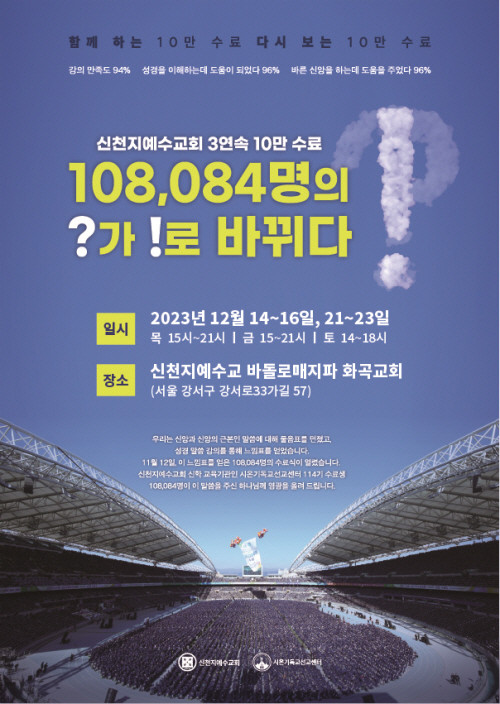 바돌로매지파 화곡교회는 “이번 수료식은 지난 11월 12일 대구에서 10만 명이 수료했던 현장에 함께하지 못한 시민들을 위해 준비했다. 2019년, 2022년에도 진행한 10만 수료식 내용 및 말씀대성회에 대한 현장 사진도 준비했다”고 전했다.