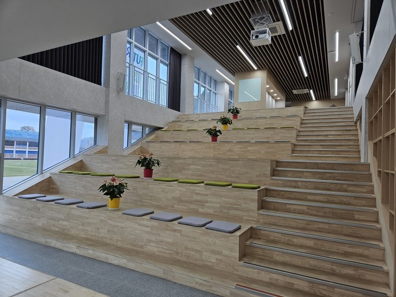 특히 1층에 만든 ‘라온광장’은 건물 중심에 있는 개방형 공간이다. 단순한 이동 공간을 넘어 학생들이 자연스럽게 모여 소통하는 학교 활동의 핵심 공간으로 설계했다. 교실과 공용 공간을 유기적으로 잇는 라온광장은 디지털 기기를 활용한 수업은 물론 토론, 전시, 소규모 행사 등 다양한 배움의 장으로 활용할 예정이다.