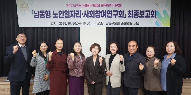 [남동구 세계타임즈=심하린 기자] 남동구의회 의원연구단체 「남동형 노인일자리·사회참여연구회」(회장 반미선 의원)는 지난 30일 구의회 중회의실에서 정책연구 용역 최종보고회를 개최했다.