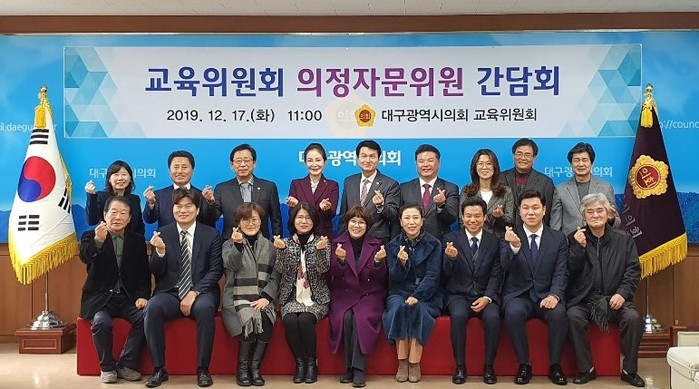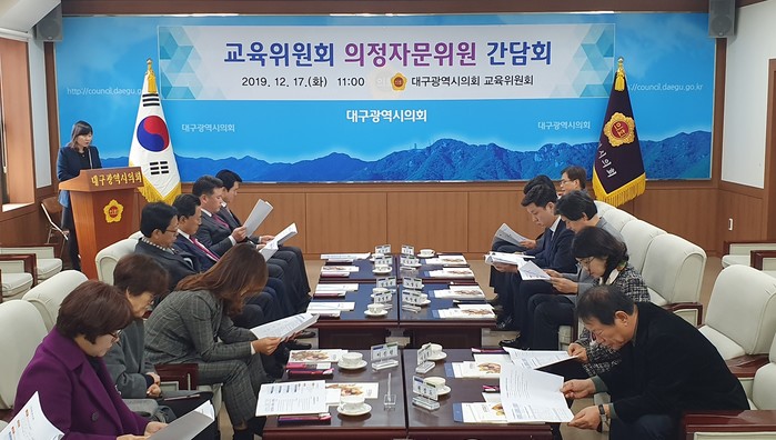 [대구=세계타임즈 한성국 기자] 대구시의회 교육위원회(위원장 박우근)는 12월 17일 오전 11시 시의회 2층 간담회장에서 의정활동에 필요한 교육분야 정책적 자문 및 폭넓은 의견수렴을 위해 의정자문위원 간담회를 가졌다.
