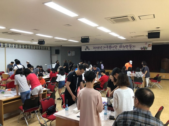 이에 1기 가족봉사단 31가족 83명과 2기 가족봉사단 15가족 44명이 동시에 진행되며, 1기 가족봉사단은 비누만들기, 2기 가족봉사단은 시설방문 봉사활동을 펼쳤다. 비누만들기는 9월에 진행 예정인 송편만들기에서 송편과 같이 독거어르신에게 전달 될 계획이고, 시설방문 봉사활동은 3개의 조로 나뉘어 효사랑 요양원, 원방의 집, 예수의 집을 방문하였다.