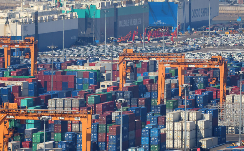 사진은 11일 경기도 평택항에 수출용 차들과 컨테이너 박스들이 세워져 있다. 2025.2.11