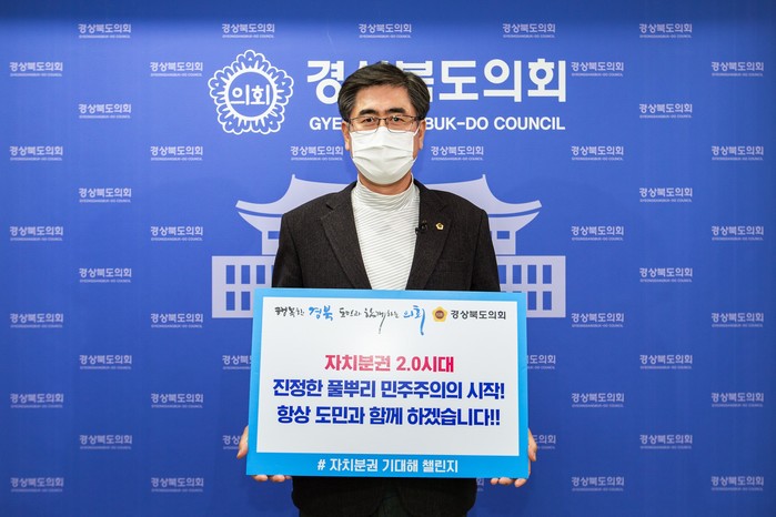 [경북=세계타임즈 한성국 기자] 경상북도의회 도기욱 부의장은 21일 '자치분권 2.0'시대의 개막을 응원하는 '자치분권 기대해' 챌린지에 동참했다.