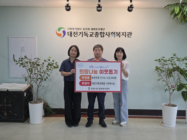 [중구 세계타임즈=이채봉 기자] 대전 중구 문화1동(동장 장성임)은 대전기독교종합사회복지관(관장 김은정)에서 「제4회 글꽃 플리마켓」을 통해 조성된 복지기금 55만 원을 문화1동 지역사회보장협의체(위원장 황광서)에 전달했다고 1일 밝혔다.