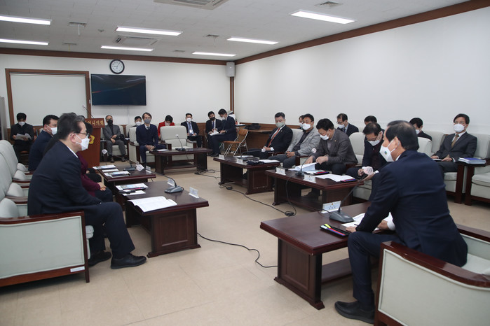 이날 회의에서 대구시의회 확대의장단은 ‘대구경북특별지방자치단체 설치 추진 전담조직 구성’, ‘군위군의 대구광역시 편입 추진’, ‘낙동강 수계 대구취수원 다변화’, ‘대구경북신공항 성공 건설을 위한 특별법 제·개정’ 등 주요 현안에 대해 대구시 행정부시장으로부터 보고를 받은 후, 대구시가 장기적인 안목을 갖추고 더욱 꼼꼼하게 사업을 추진해 줄 것을 당부했다.