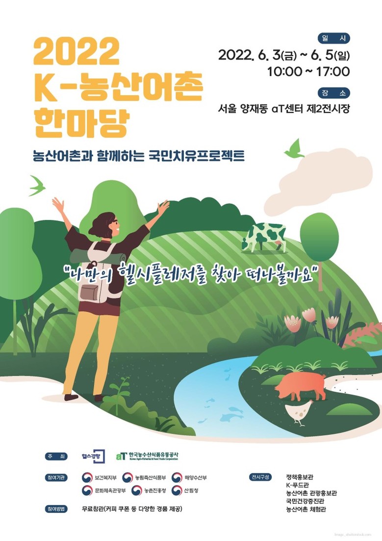 K-농산어촌 한마당은 헬스경향·한국농수산식품유통공사에서 공동주최하는 박람회로, 국회·정부·공공기관·지자체·기업 등이 대거 참여하여 농산어촌 경쟁력 제고를 위한 정책·산업 홍보의 장을 만들기 위해 기획되었다. 이번 행사는 ▲정책홍보관, ▲K-푸드관, ▲농산어촌 관광홍보관, ▲국민건강증진관, ▲농산어촌 체험관 등 총 5개 전시관으로 구성되며, 180여개의 부스를 설치하여 다채롭게 꾸며질 예정이다.