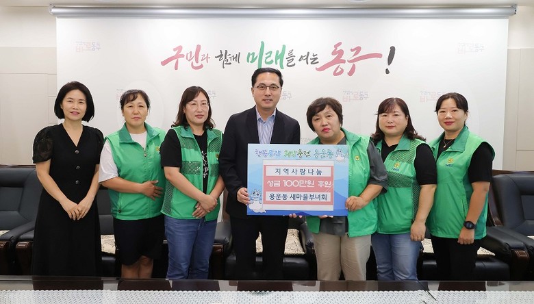 용운동 새마을부녀회는 지난 8월 30일 열린 용운동 마을축제 ‘한여름밤의 음악회’에서 먹거리장터를 운영해 얻은 수익금 100만 원을 ‘천사의 손길’에 지정 기탁했으며, 전액 용운동 저소득 주민 지원사업에 사용될 예정이다.