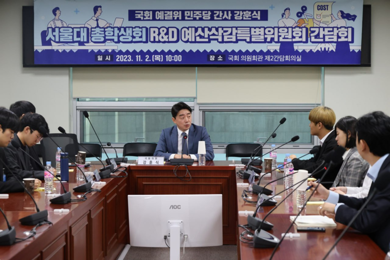한편 이날 간담회는 서울대 R&D 예산 삭감 대응 특별위원회 소속 한 학생의 요청에 의해 마련되었다 . 이 학생은 민주당 예결위 간사인 강훈식 의원에게 이메일을 보내 “ 종합대학에 소속된 기초과학 연구 학생들로부터 우려의 목소리를 들어달라 ” 고 요청한 것으로 알려졌다 .