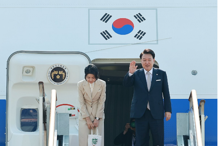 [세계타임즈 = 이채봉 기자] 윤석열 대통령은 투르크메니스탄·카자흐스탄·우즈베키스탄 등 중앙아시아 3개국 국빈 방문을 위해 투르크메니스탄으로 출국했다.윤 대통령과 부인 김건희 씨는 서울공항에서 대통령 전용기인 공군 1호기 편으로 순방길에 올랐다.윤 대통령과 김씨가 탑승한 차량이 도착하자 이상민 행정안전부 장관이 차량 앞에서 맞이했다. 윤 대통령은 짙은 남색 정장에 연한 회색 넥타이를 착용했고, 김씨는 밝은 베이지색 치마 정장 차림에 바이바이 플라스틱 백이라고 적힌 에코백을 들었다.서울공항에는 이 장관을 비롯해 황우여 국민의힘 비상대책위원장, 추경호 국민의힘 원내대표, 정진석 비서실장, 성태윤 정책실장, 홍철호 정무수석 등이 나와 윤 대통령을 환송했다.윤 대통령 부부는 공군 1호기에 올라 각각 손 인사와 목례를 하고 탑승했다.윤 대통령은 첫 순방국인 투르크메니스탄에서 세르다르 베르디무하메도프 투르크메니스탄 대통령과 정상회담을 열어 협력 확대를 골자로 한 양해각서(MOU)를 체결할 예정이다.투르크메니스탄은 세계 4위 천연가스 보유국으로, 에너지 플랜트 분야에서 우리 기업의 진출 확대를 위한 구체적인 방안이 논의될 전망이다.