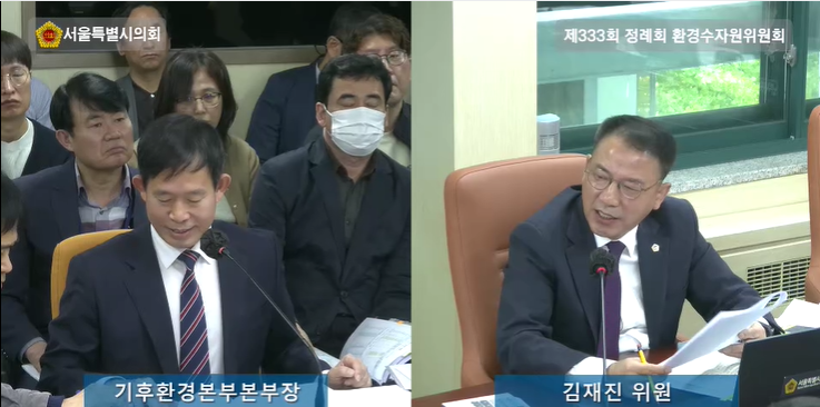 [서울 세계타임즈=이장성 기자] 서울특별시의회 환경수자원위원회 김재진 의원(국민의힘, 영등포1)은 제333회 정례회의 2025년 기후환경본부 행정사무감사에서 자치구가 직고용한 환경공무관들의 통상임금 소송 관련 임금 지급 문제에 대해 집중 질의하며, 25개 자치구가 떠안은 약 3,780억 원 규모의 재정 부담에 대해 서울시의 지원 방안을 마련해야 한다고 촉구하였다.