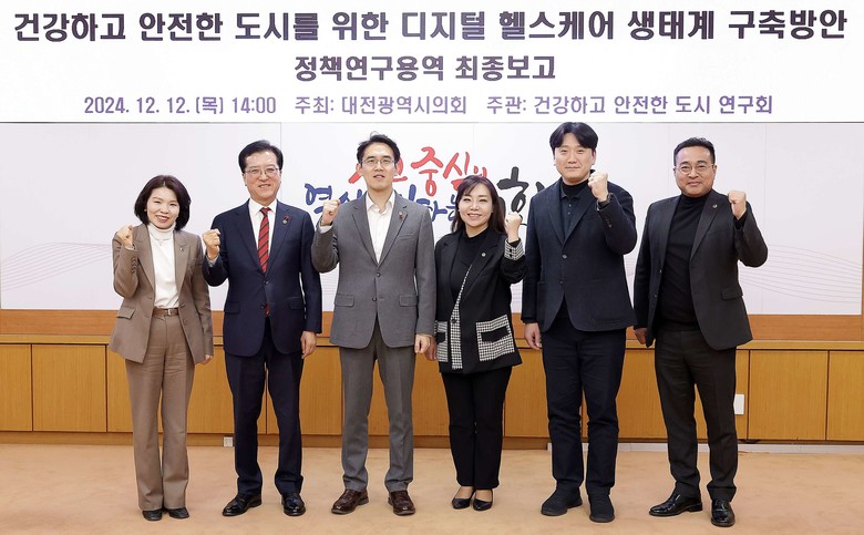[대전 세계타임즈=이채봉 기자] 대전시의회 의원연구회인 ‘건강하고 안전한 도시 연구회’는 12일 오후 2시 시의회 소통실에서 ‘건강하고 안전한 도시를 위한 디지털 헬스케어 생태계 구축 방안 연구용역 최종 보고회’를 개최했다.