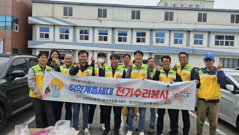 전기안전지킴이봉사단(단장 이태민) 15명은 같은 날 오전 중구청에서 집결해 팀을 나누어 대사동, 태평1·2동, 석교동의 각 봉사 장소로 이동 후, 취약계층 4가구를 대상으로 전기 배선과 차단기, 콘센트 등 전기 관련 시설을 꼼꼼하게 점검하고 수리하여 전기화재 예방에 힘썼다.