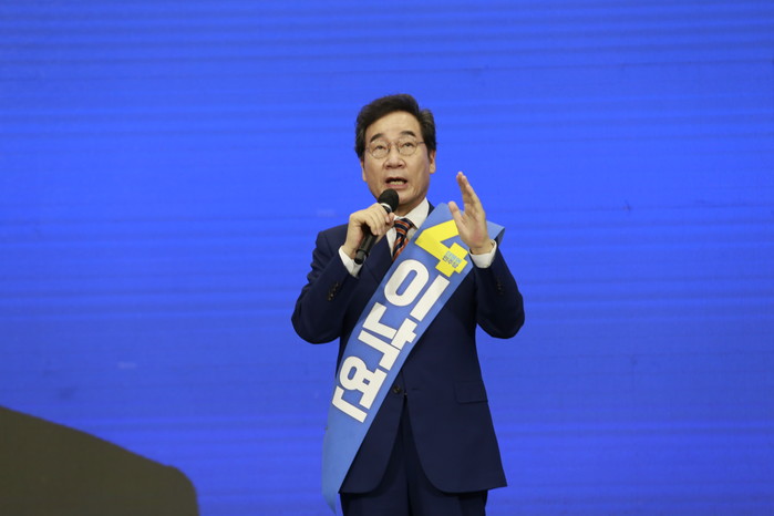 이 후보는 이어 "저 이재명은 지킬 약속만 했고 한번 한 약속은 반드시 지켰다. 성남시장과 경기도지사를 거치며 확고한 소신과 비전, 용기와 추진력으로 능력을 실적으로 증명했다"며 "없는 죄도 만드는 부패기득권과 정면으로 맞서 싸웠다"고 밝혔다.