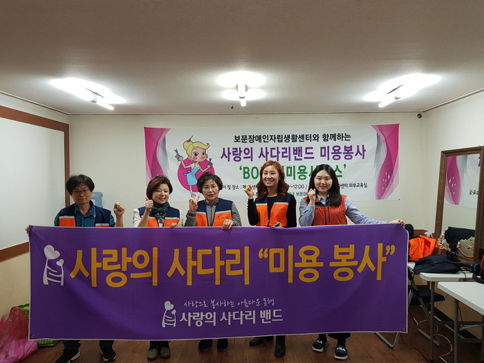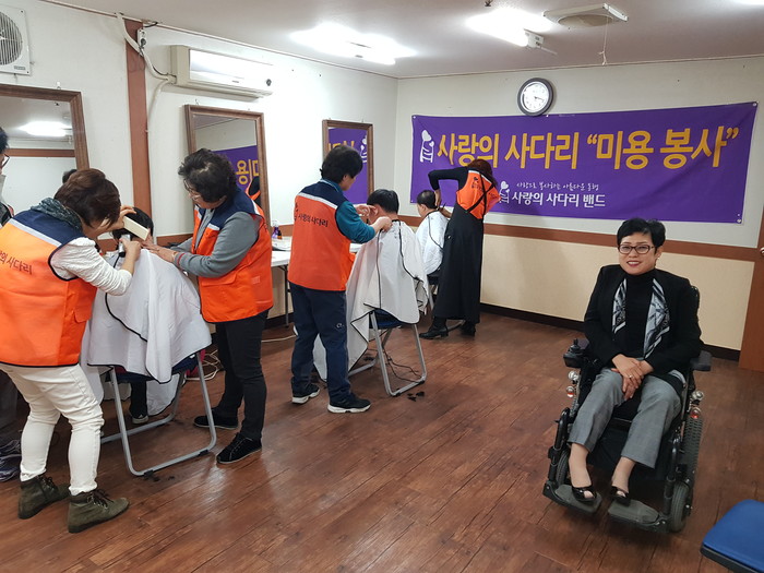[세계타임즈 이장성 기자] SNS 대전시 봉사단체 사랑의 사다리 밴드(리더 이정제)는 15일 오전10시, 동구 판암동에 위치한 보문장애인자립생활센터(센터장 신인수)에서 미용봉사로 우리 사회의 따뜻한 사랑을 전달 하였다.