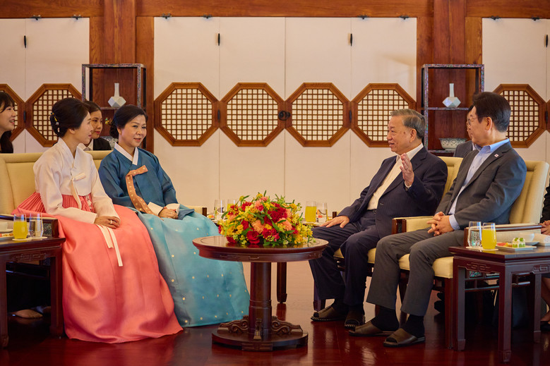 [세계타임즈 = 이채봉 기자] 이재명 대통령과 부인 김혜경 여사는 12일 오전 국빈 방한 중인 또 럼 베트남 공산당 서기장 부부를 청와대 상춘재로 초청해 친교의 시간을 가졌다.두 정상 부부는 이날 상춘재에서 양국 전통악기 공연을 감상하고 산책과 차담을 나누며 우애를 다졌다고 강유정 대통령실 대변인이 서면 브리핑을 통해 밝혔다.