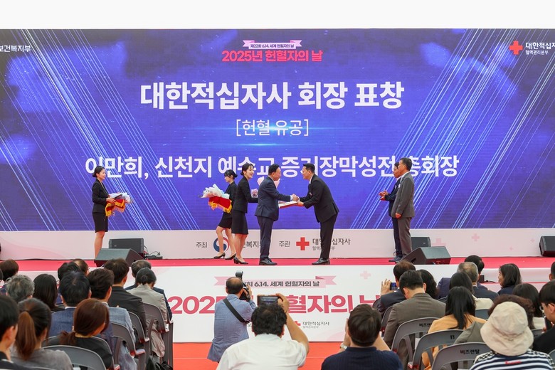 신천지예수교 증거장막성전(이하 신천지예수교회) 이만희 총회장이 지난 13일 ‘2025 헌혈자의 날’ 기념행사에서 대한적십자사 회장 표창을 수상했다.