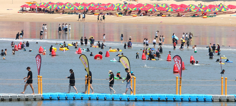 11일 오후 인천 중구 을왕리해수욕장을 찾은 피서객들이 물놀이하며 더위를 식히고 있다. 2024.8.11