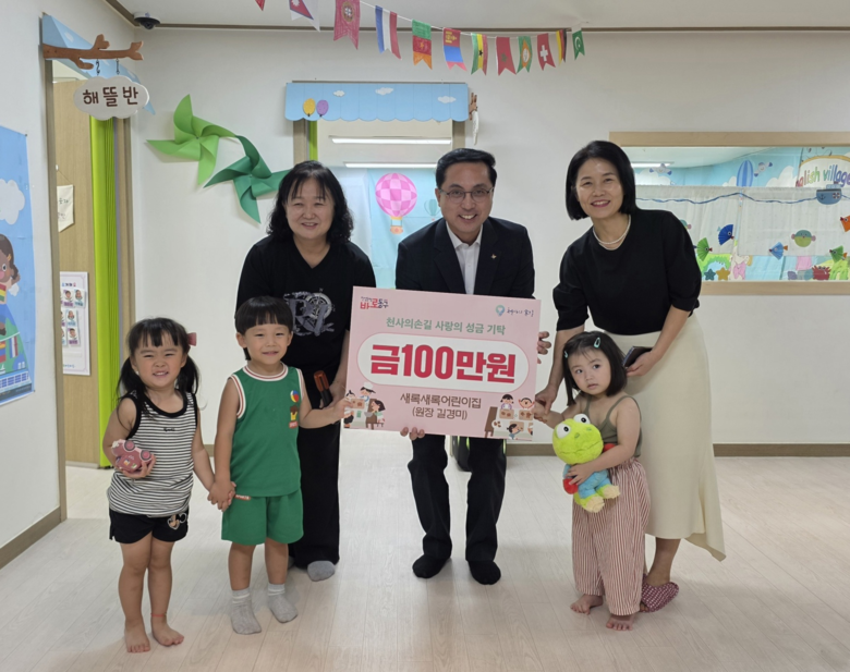 [동구 세계타임즈=이채봉 기자] 대전 동구 용운동 행정복지센터(동장 이경순)는 지난 5일 국공립 새록새록 어린이집(원장 길경미)으로부터 ‘천사의 손길’ 성금을 기탁받았다고 밝혔다.
