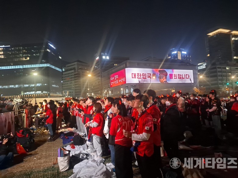 [세계타임즈=방춘재 기자] 한국 축구대표팀의 2022년 카타르월드컵 첫 경기에서 서울 광화문광장 등에서 거리 응원이 열렸다.
