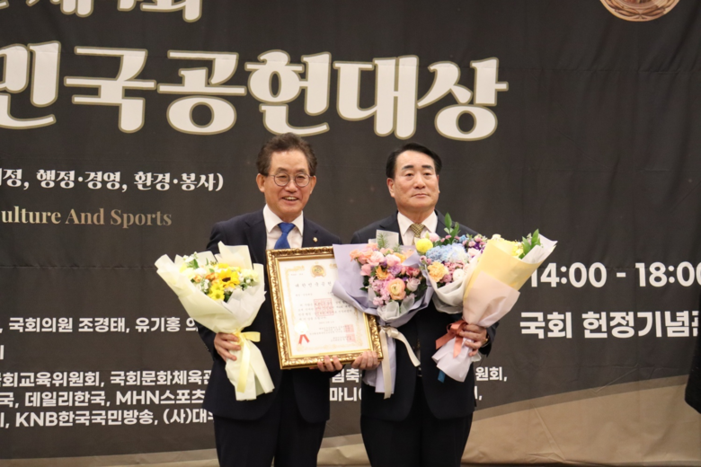 ‘대한민국 공헌대상’은 대한민국 행정·경영·교육·문화·체육·환경 등 사회 각 분야에서 눈부신 발전과 도약을 이끌어 왔을 뿐만 아니라 지속 가능한 사회 구축을 위해 묵묵히 공헌한 숨은 인물을 발굴하여 격려하기 위해 수여하는 상이다.