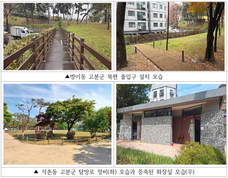 방이동 고분군을 자주 찾는 한 주민의 말이다. 풍납동에서는 “토성 산책로에 경관조명이 설치돼 밤에도 안심하고 걸을 수 있다”는 반응이 나왔고, 석촌동 고분군을 찾는 주민은 “낡아서 이용하기 꺼려졌던 화장실이 더 넓고 깨끗하게 정비돼 이젠 자주 찾게 된다”고 말했다.