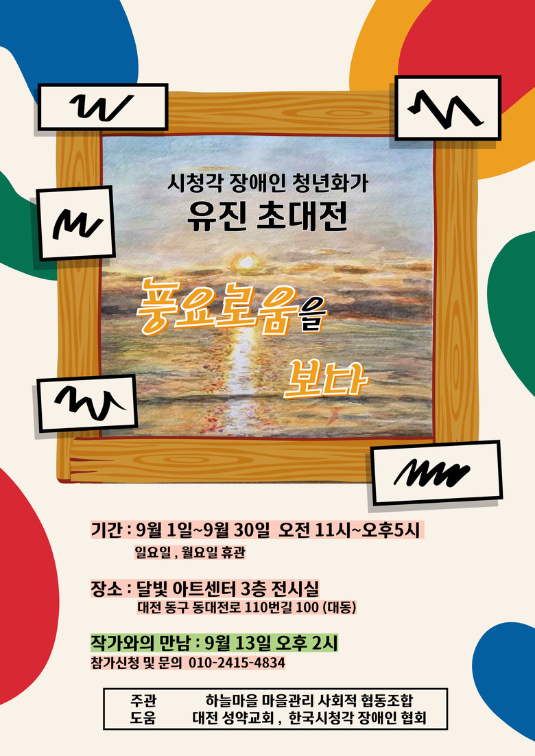 유진 작가는 시청각 장애를 지닌 청년화가로, 작품 속에 따뜻한 시선과 삶의 이야기를 담아내며 관람객에게 깊은 울림을 전하고 있다. 특히, 이번 전시는 단순한 작품 감상을 넘어, 장애인이 독립적으로 살아가는 모습을 예술을 통해 바라보고 공감할 수 있는 기회를 제공할 예정이다.