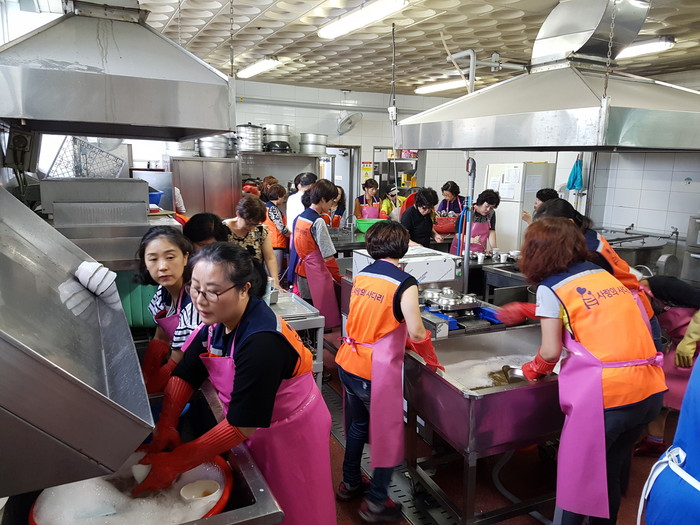[대전=세계타임즈 이장성 기자] 5천명의 회원들이 활동하는 자발적인 SNS봉사 밴드인 사랑의 사다리 밴드(리더 이정제)회원 20명은 7일 오전 11시40분~오후1시까지 대전광역시 노인복지관(관장 유한봉)에서 500여분의 어르신들 점심시간에 설거지와 잔밥봉사로 사회적 효행 실천을 하였다.