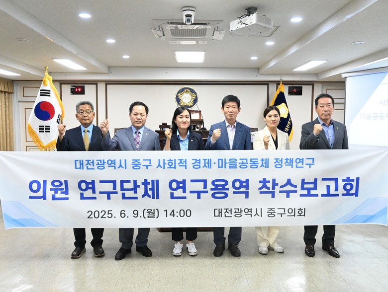 [중구 세계타임즈=이채봉 기자] 대전 중구의회(의장 오은규) 의원연구단체인 ‘대전광역시 중구 사회적경제·마을공동체 정책연구회(대표의원 육상래)’는 9일 중구의회 본회의장에서 ‘대전광역시 중구 사회적경제·마을공동체 정책연구 착수보고회’를 가졌다고 밝혔다.