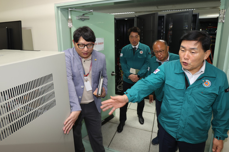문경복 군수는 직접 4층 정보통신실을 방문해 전산실 내 항온항습기, UPS 배터리 상태, 서버 및 네트워크 장비 시설 등을 점검하고, 화재 취약 요인이 없는지 꼼꼼히 점검했다.