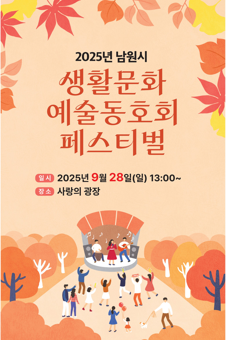 오후 1시부터 오후 6시까지 남원 사랑의 광장 일원에서 진행되는 이번 축제는 18개 동호회의 음악·무용·농악 등 다양한 무대 공연이 펼쳐지고, 나만의 예술적 감각을 담은 생활용품을 제작해 볼 수 있는 전시 및 체험 부스가 마련되었다.