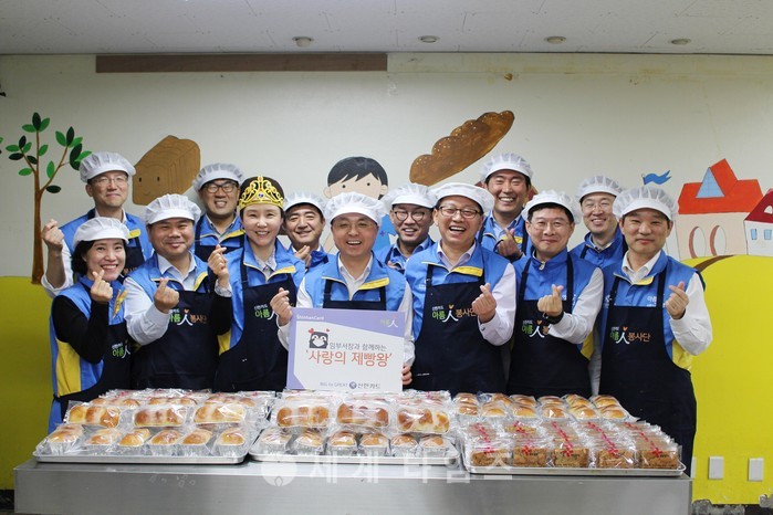 신한카드 임원 17명은 빵 반죽부터 포장까지 직접 빵을 만들어 독거 어르신 및 사회복지시설에 전달했다.