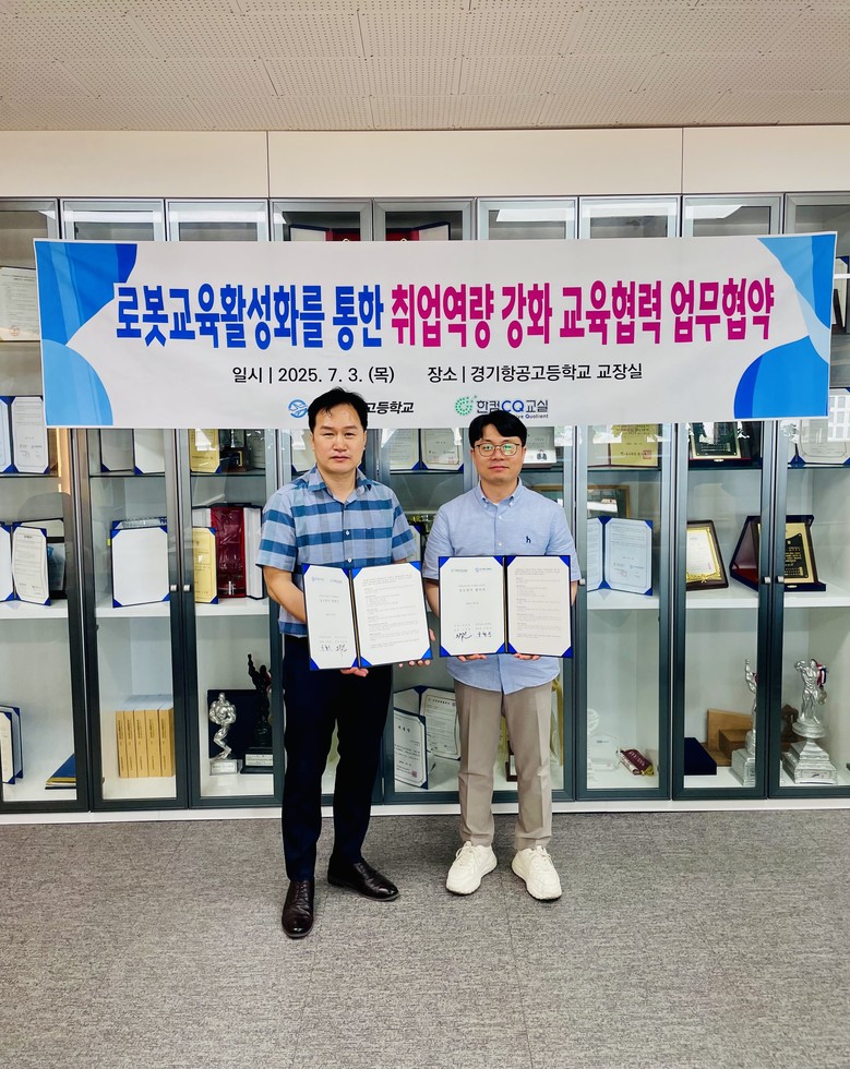 협약식은 경기항공고 교장실에서 진행되었으며, 양 기관은 AI·로봇 중심의 코딩 실습 교육 제공, 휴머노이드 로봇 제어 기술 교육 강화, 코딩 전문가 및 로봇 기술 인재 양성, 학생 진로 맞춤형 교육 지원 등을 위해 상호 협력하기로 뜻을 모았다. 본 협약은 경기항공고가 추진하고 있는‘직업계고 미래교육 재구조화 사업’의 일환으로, 디지털 전환 시대에 적합한 인재를 양성하고 실질적인 진로 설계를 지원하는 데 중점을 두고 있다.