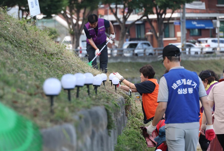 이날 행사에는 박희조 동구청장을 비롯해 주민자치회, 통장협의회 등 12개 자생단체 회원과 삼성동 직원 등 70여 명이 참여해 북부교 하단 대동천 힐링산책로에서 무성하게 자란 잡초를 제거하고, 노후된 조명을 교체·신규 설치하는 작업을 진행했다.