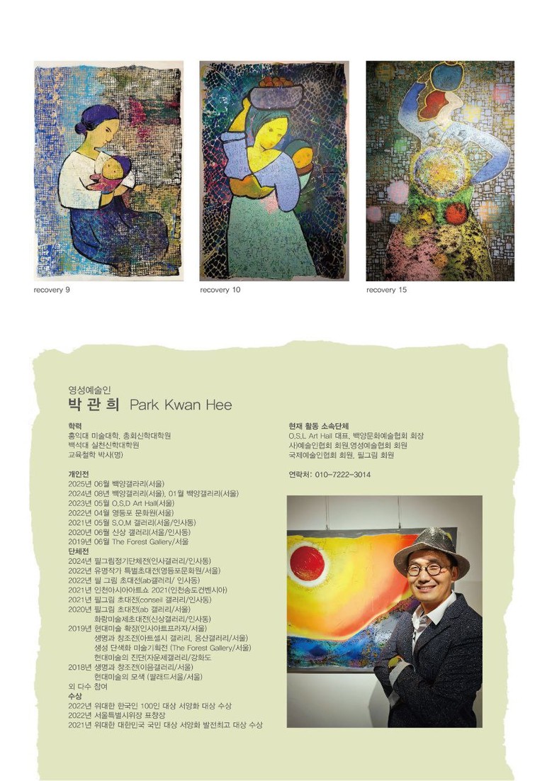 이번 전시는 단순한 작품 감상이 아닌, ‘회복’이라는 삶의 여정을 함께 공감하고 나눌 수 있는 치유의 시간이 될 것으로 기대를 모은다.