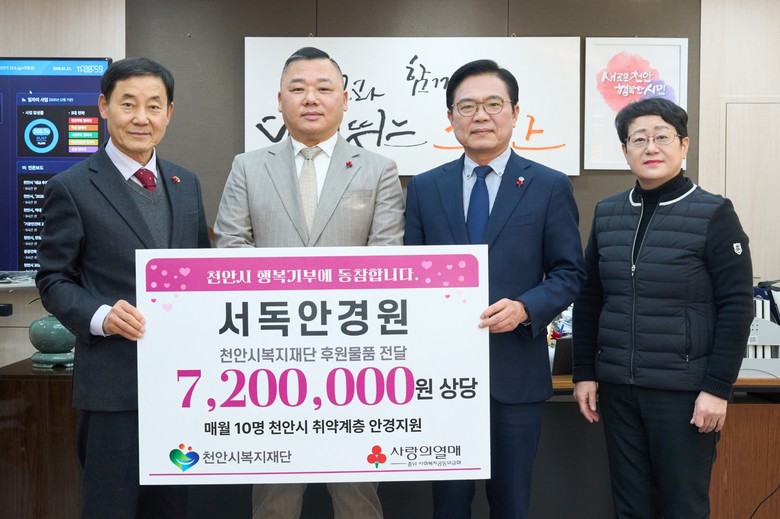 이운형 천안시복지재단 이사장은 “이번 기부는 매월 이어지는 나눔이라는 점에서 의미가 있다”며 “따뜻한 나눔이 시력 보호가 필요한 이웃들에게 새로운 희망이 될 수 있도록 재단에서도 책임감을 가지고 지원해 나갈 것”이라고 말했다.