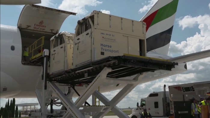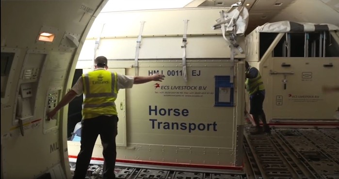 경주마들의 출국은 공항가는 길부터 이색적이다. 리무진버스 부럽지 않은 약 3억 원의 고가 무진동 마필전용 트럭이 시속 80km 이하의 속도로 공항까지 마(馬)님을 모신다. 공항에 도착 후 3마리의 말은 2평 크기의 말 전용 항공스톨로 자리를 옮겨 항공기에 탑승한다. 스톨 바닥은 편안한 쿠션감을 위해 톱밥이 두텁게 깔려있으며 기내식인 최고급 건초가 항시 비치되어 있다.