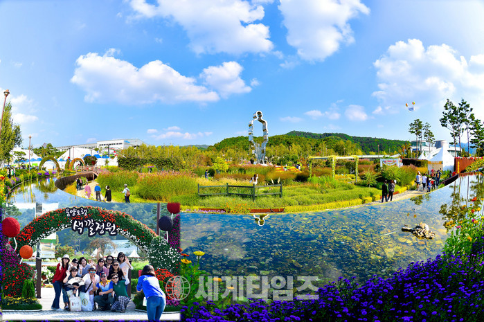 4개의 원형으로 이루어진 색깔정원은 가운데에는 인간은 우주의 한 부분이라는 인간조형물이 놓여있으며, 주변에 메인정원, 물공간, 코키아 정원이 동그랗게 감싸고 있는 형태를 이루고 있어 정원 속에 정원을 만끽할 수 있도록 이뤄졌다.