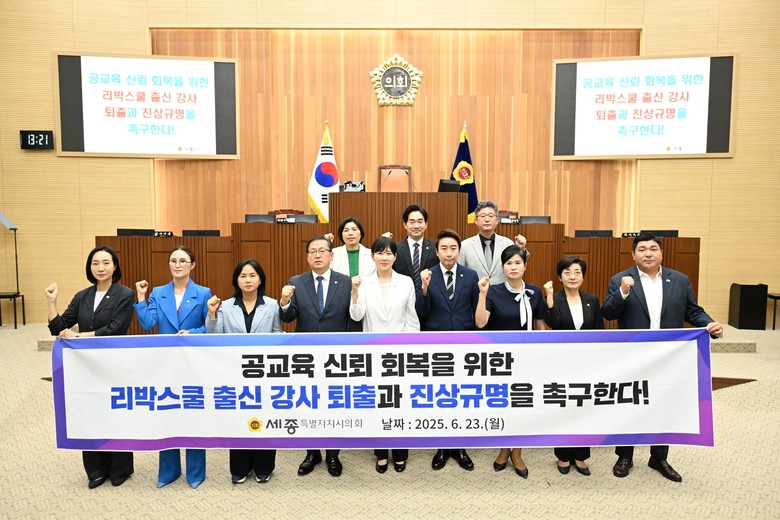 이에 세종시의회는 정부가 사안을 축소·봉합할 것이 아니라, 국민적 우려를 직시하고 제도 전반을 점검해야 한다고 강조하며 ▲리박스쿨 등 관련 기관 출신 강사의 늘봄학교 참여 현황 전면 조사, 부적격 강사 즉각 퇴출 ▲검증 없이 추진된 교육정책에 대한 책임 통감과 공교육 신뢰 회복을 위한 국가의 의무 이행 ▲유사 사례 재발 방지를 위해 교육의 정치적 중립성과 공정성 확보를 위한 법제화 방안 마련을 강력히 촉구했다.