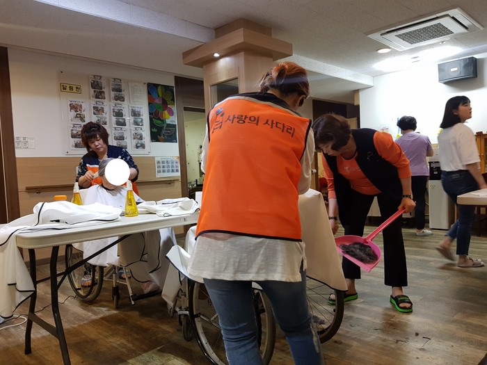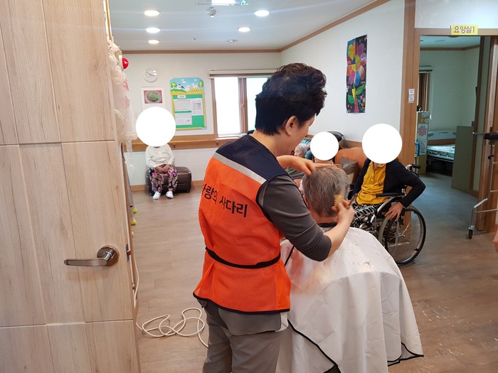 이날 미용봉사에는 박유신(머리만들기, 와동), 이순옥(이순옥헤어샆, 오정동), 채경숙(채련화미용실, 중리동) 원장들이 생업을 잠시 미루고 미용봉사를 하였다.