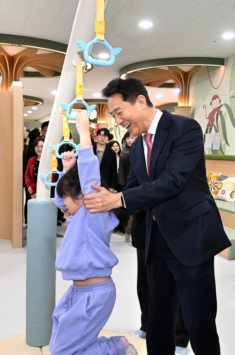 오 시장은 "앞으로 결혼해 아이 낳고 키울 분들에게 이런 정책과 시설을 많이 보여드리고, 실제로 아이들이 이렇게 행복하게 커가는 모습을 보여주는 것이 서울시의 비전"이라며 "오늘 또 하나 결실을 맺는 자리 함께하며 따뜻한 응원을 보내주신 만큼 서울 425개 모든 동 하나씩 어린이 위한 시설을 만들기 위해 노력하겠다"라고 말했다.