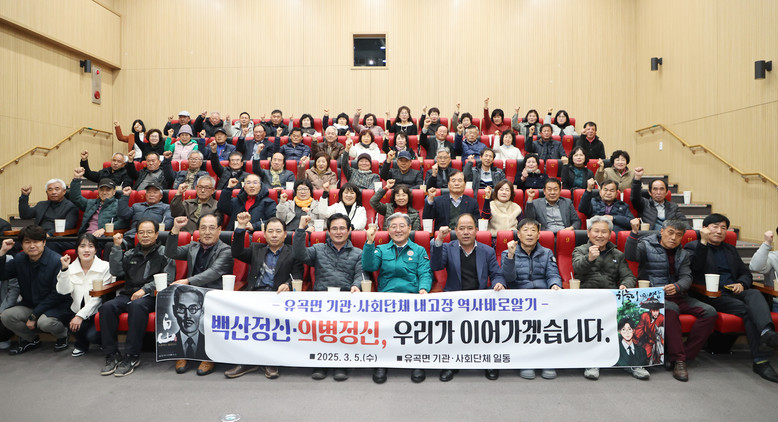 최경호 유곡면 이장협의회장은 "홍의장군 곽재우 의병장 탄생지인 유곡면은 이웃 마을 안희제 선생 역시 뿌듯한 자랑으로 여기고 있다“며 ”의병정신과 백산정신이 하나로 모인 곳이 유곡면이고, 우리가 바로 빛나는 의령 역사의 후예들"이라고 말했다.