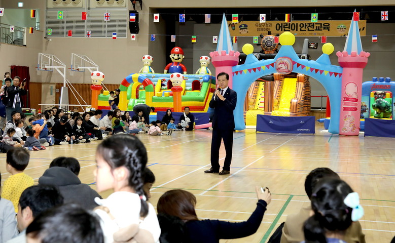 이어서 유성종합스포츠센터에서 열린 대전어린이집연합회 민간분과위원회 유성구지회 주최 ‘어린이 안전교육’ 현장을 방문해 아이들 눈높이에 맞춘 맞춤형 체험장을 둘러보고, 놀이를 통해 쉽고 재미있게 안전사고 대응 요령을 습득할 수 있는 뜻깊은 행사가 되기를 성원했다.