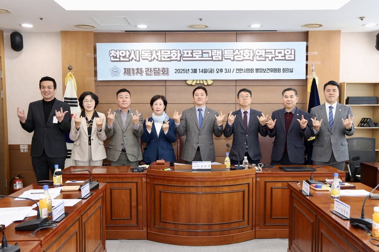 [천안시 세계타임즈=이현진 기자] 천안시의회(의장 김행금)는 ‘천안시 독서문화 프로그램 특성화 연구모임’(대표의원 조은석)이 3월 14일 제1차 간담회를 열고 동참의원들과 연구방향 등을 논의했다고 밝혔다.